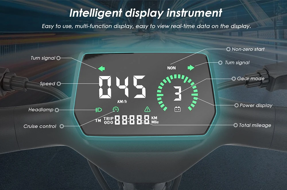 Ecranul LCD inteligent poate afisa clar date importante, inclusiv viteza curenta, starea bateriei, modul de viteza, kilometrajul total etc. Trotineta electrica pliabila KuKirin A1 este echipata cu lumini LED puternice in fata si in spate pentru a imbunatati siguranta pe timp de noapte sau in conditii de vizibilitate redusa. In plus, integreaza si semnalizatoare pentru a facilita schimbarile de banda si virajele mai sigure.