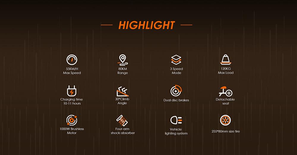 KuKirin G2 Max utilizeaza o baterie cu litiu de 48V 20Ah de mare capacitate si ofera o autonomie de pana la 80 km, fara griji cu privire la kilometraj.
