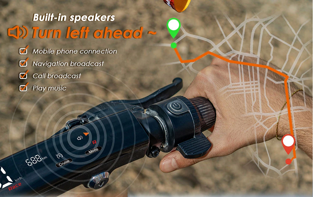 Ai la dispozitie trei moduri de rulare – ECO, SPORT si RACE – pentru a adapta experienta in functie de drum si preferinte. In modul non-Turbo, viteza este limitata la 25 km/h pentru un consum optim. In modul Turbo, vitezele maxime ajung la 25 km/h in ECO, 35 km/h in SPORT si pana la 50 km/h in RACE, cu o viteza maxima constructiva de 55 km/h.