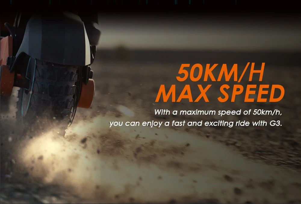 Motorul de 1200W cu sistem dublu de disipare a caldurii asigura o acceleratie rapida si o putere constanta, permitand atingerea unei viteze maxime de pana la 50 km/h. G3 transforma fiecare drum intr-o experienta dinamica si stabila.
