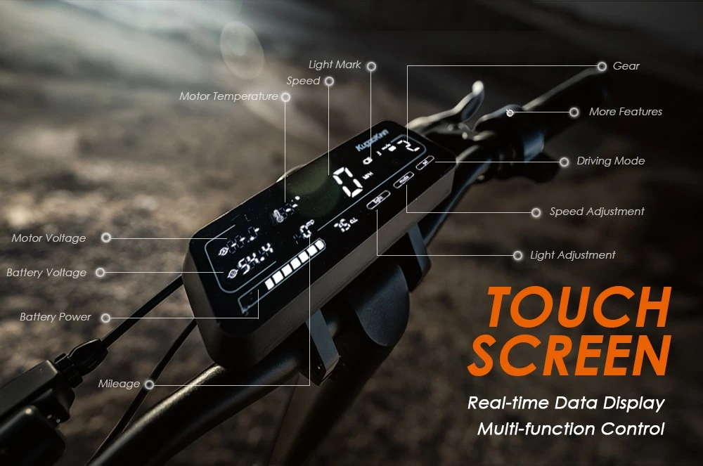 Afisaj LED: viteza / putere baterie / distanta / temperatura / curent / tensiune / pilot de croaziera / mod viteza / mod pornire / mod lumina / unitate kilometraj