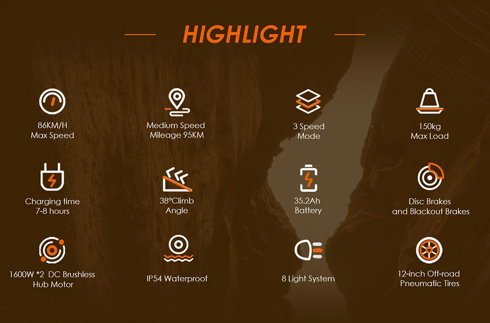 Kukirin (Kugoo Kirin) G4 MAX este echipat cu motoare de 60V/1600W*2, poate oferi putere si cuplu mare, facilitand acceleratia si urcarea. Viteza maxima poate atinge 86 km/h, ceea ce o face o trotineta electrica foarte rapida si incitanta.