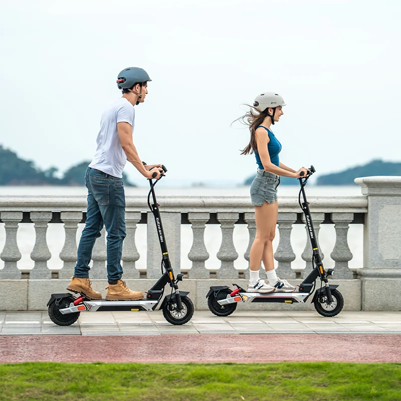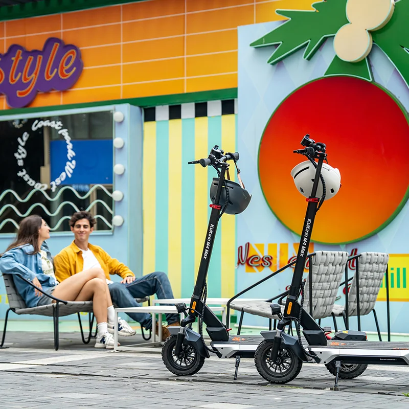 Trotineta electrica KuKirin M4 Max 800W este dotata cu anvelope cu tubles de 10 inch, care ofera o aderenta excelenta si fac fata cu usurinta diverselor conditii de drum complexe, imbunatatind semnificativ experienta de condus pe teren accidentat si pe rutele zilnice de naveta.