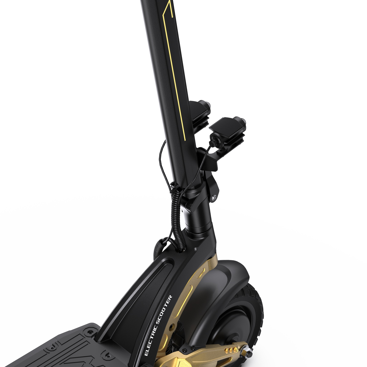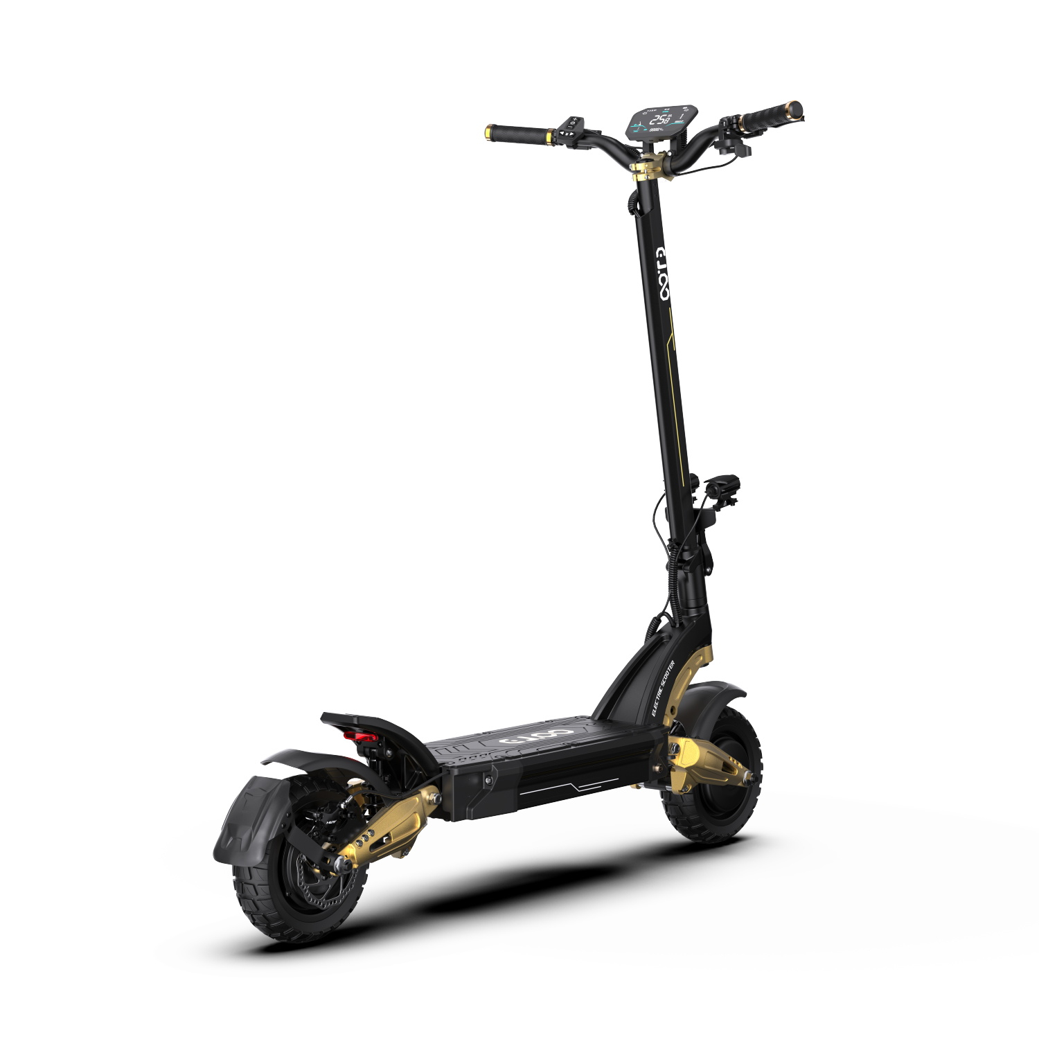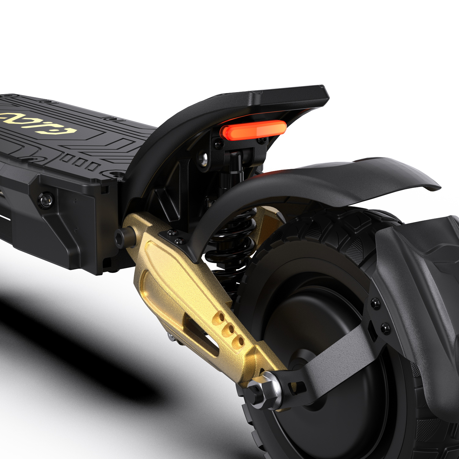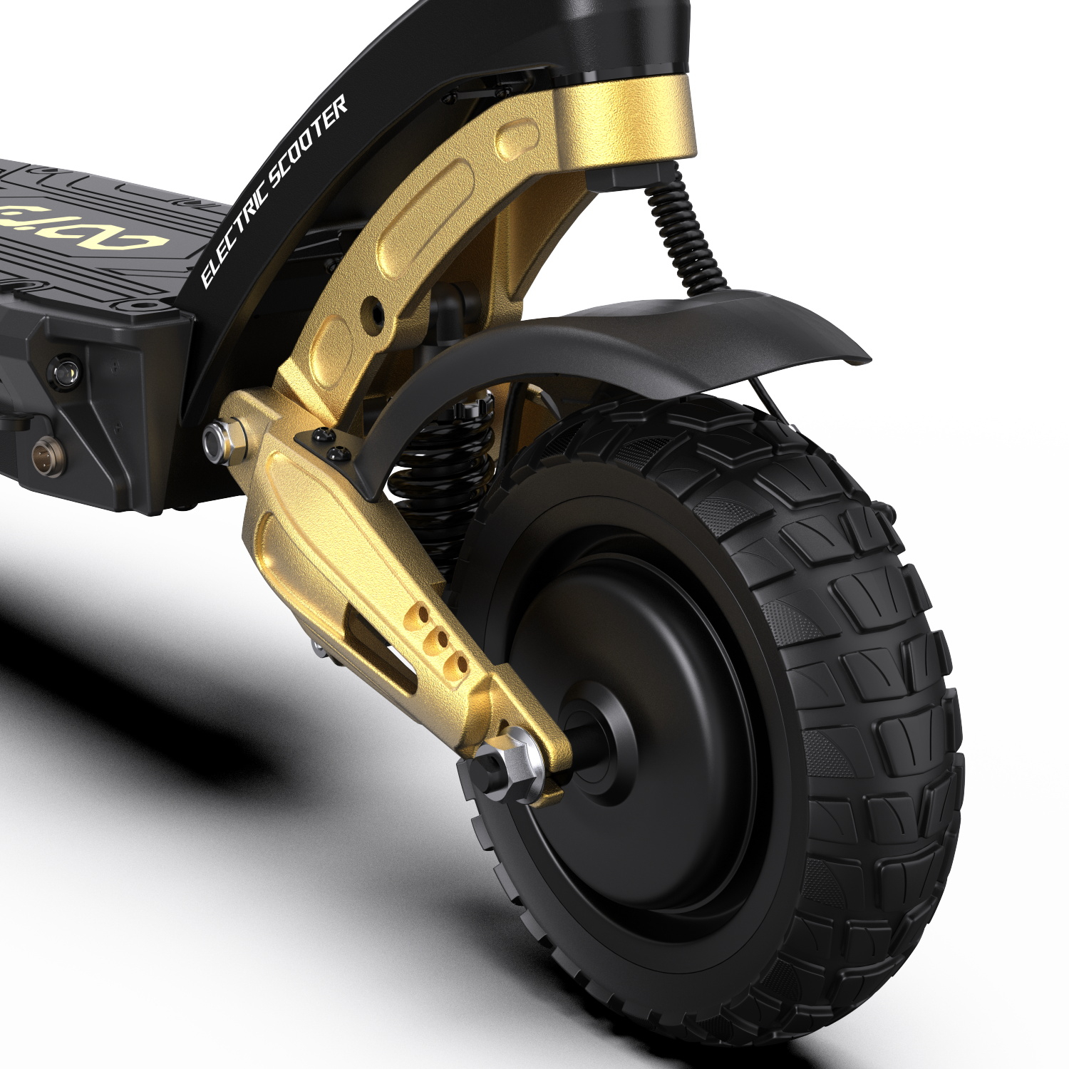Vine cu roti de 10" si anvelope tubeless All Terrain ceea ce ajuta foarte mult aderenta in momentul in care te aventurezi in padure sau pe drumuri ne asfaltate unde cu ajutorul suspesiei duble