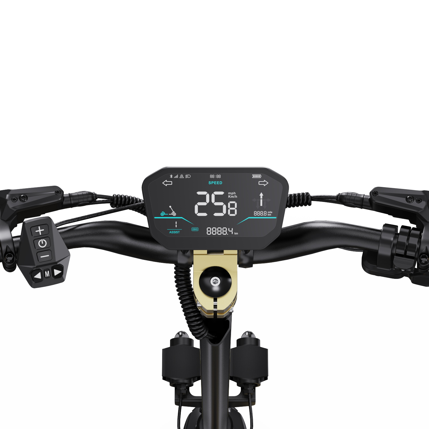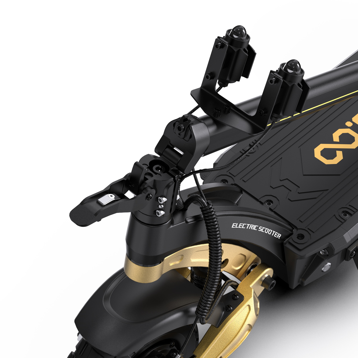 Vine cu doua motoare puternice de 1200W fiecare, brushless ce iti ofera posibilitatea vitezei maxime de 65 de km/h, si urcarea pe o inclinare de pana la 30°. Trotineta vine limitata la 25 de km/h pentru linistea ta, ne mai fiind nevoie sa te gandesti la restrictii de viteza.